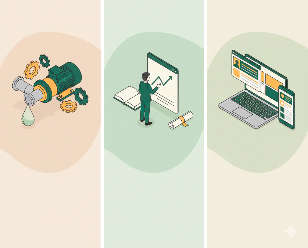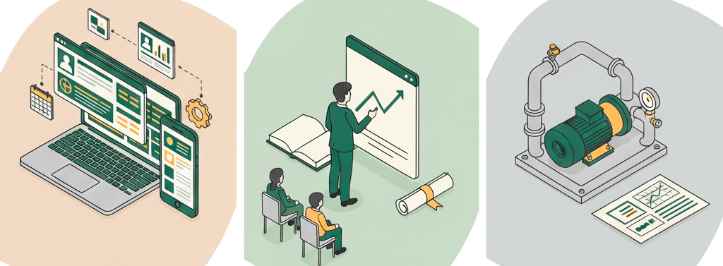 Durante años he trabajado en estaciones de bombeo, EDAR y proyectos de agua, a la vez que impartía cursos y charlas a equipos técnicos, universidades y empresas.